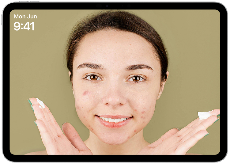 I can see that you have Rosacea, that manifest itself on your cheeks, and Moderate acne all around your face.